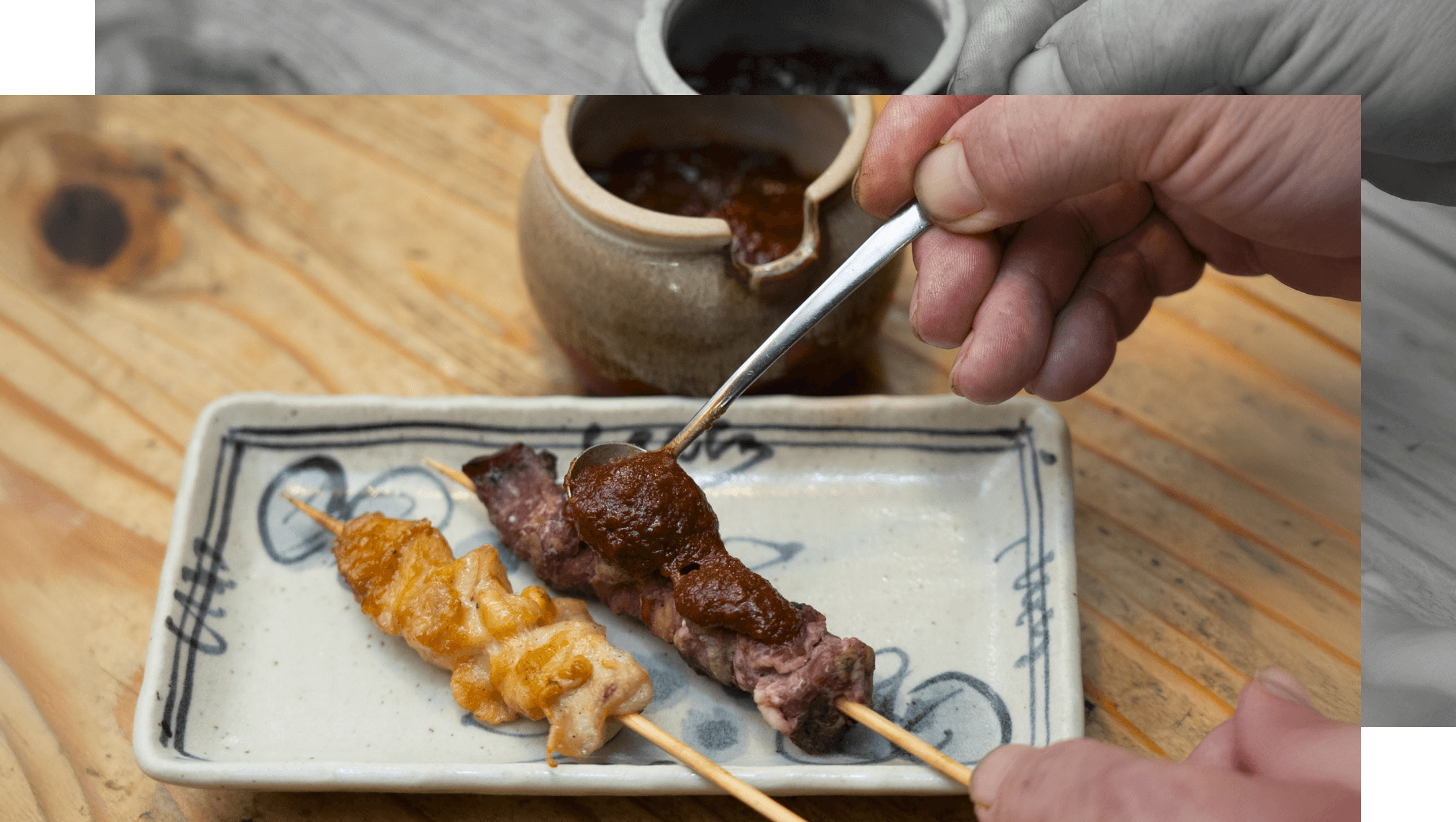 赤穂の天然塩、鶏ガラから丁寧に煮込んだ自家製ダレ、24時間熟成の岩手地鶏と国産豚。