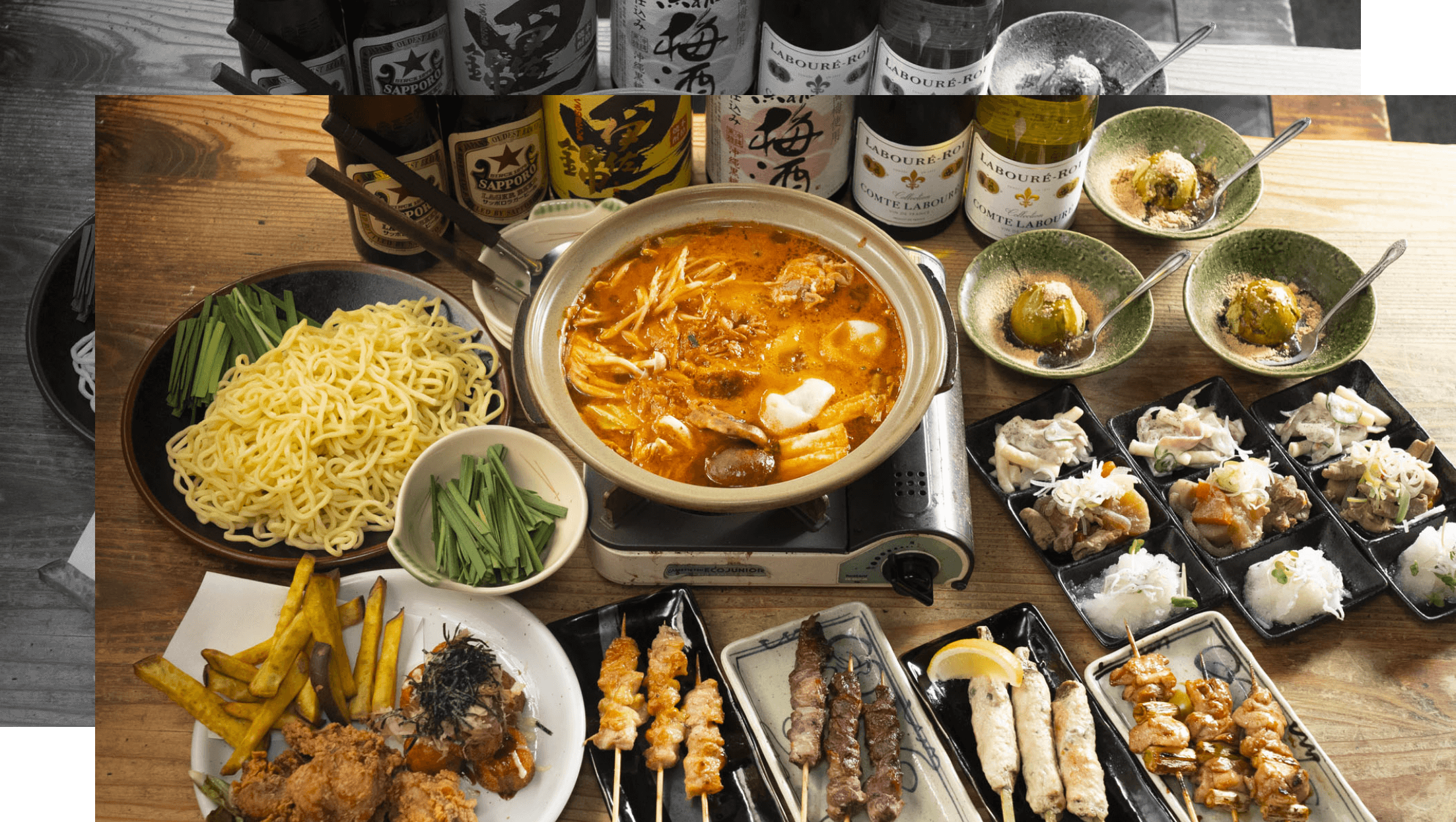 お酒との相性抜群なメニューを豊富に取りそろえ、おひとり様からご宴会まで、幅広いシーンでご利用いただけます。