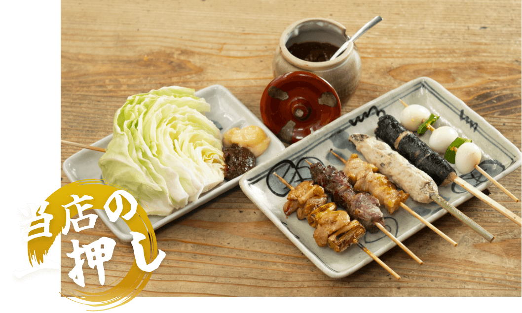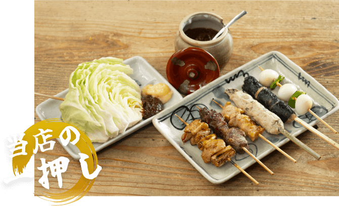 串焼きは常時30種以上、さらに季節限定の逸品や一品料理を含めると50種類以上のラインナップ。